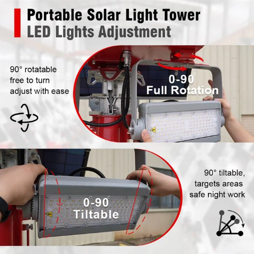 - Adjustable lighting tower lamp angles
